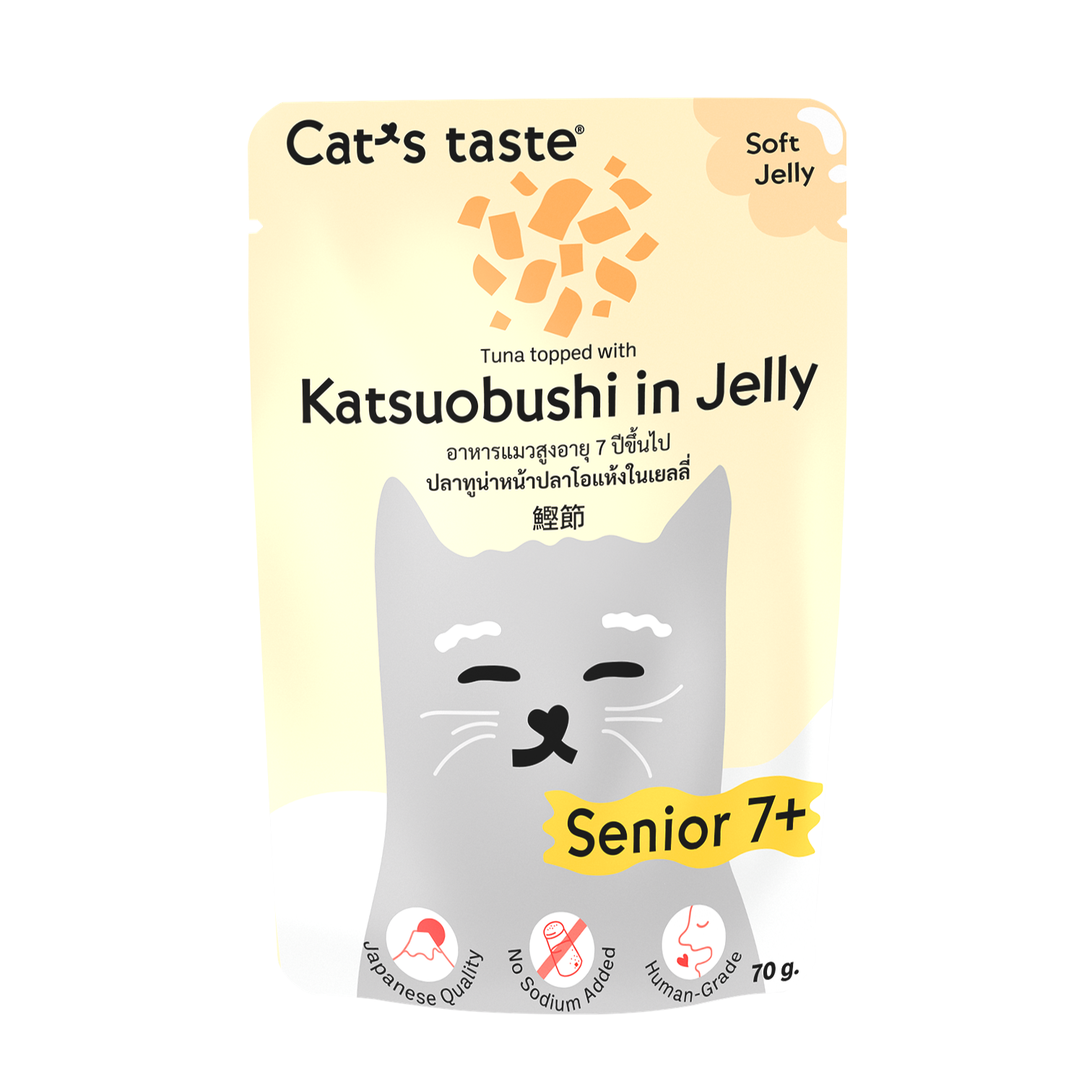 ( โหล) 70x12ก. Cat's Taste แมวแก่7+ รสปลาโอเยลลี่