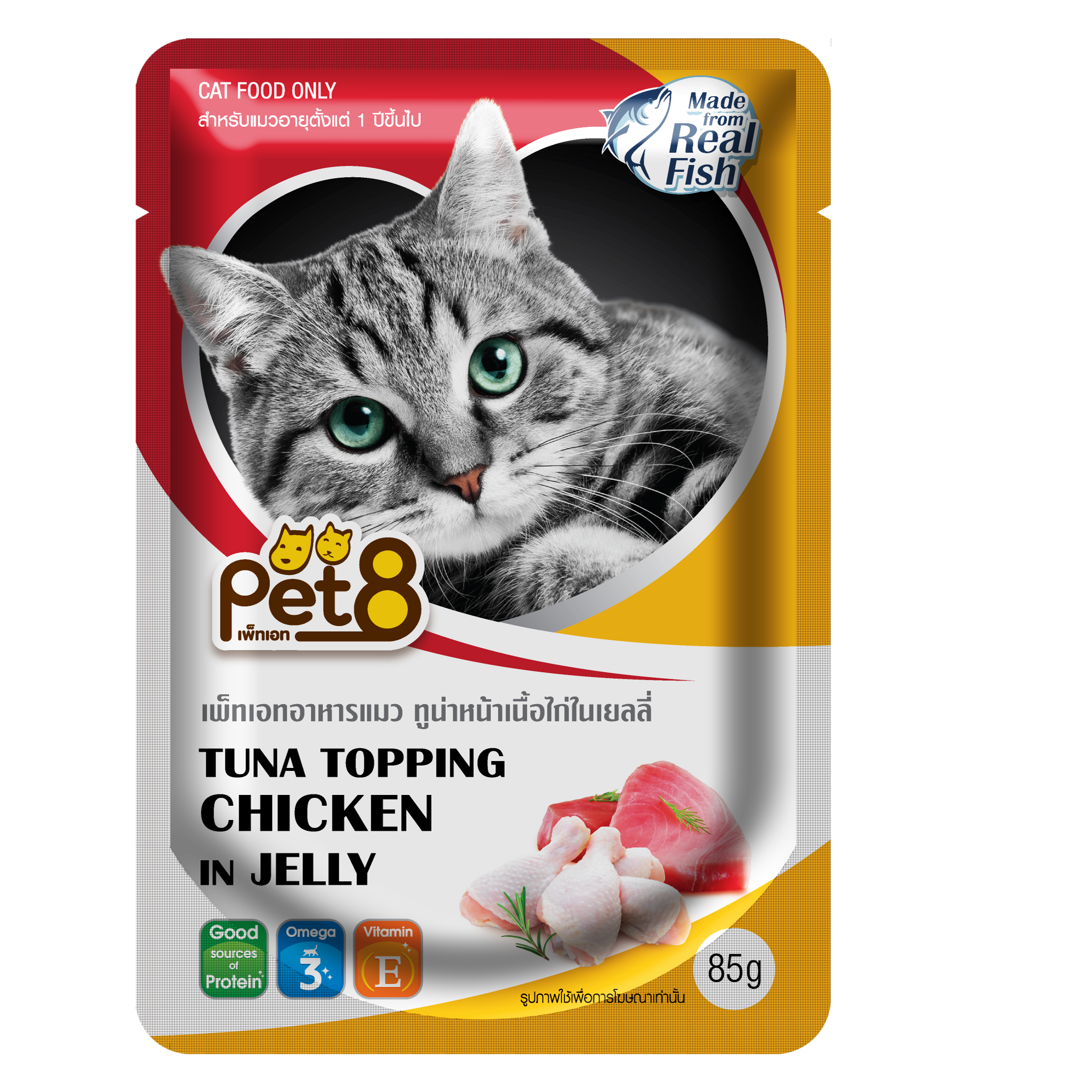 Pet8 เพาซ์แมว รสทูน่าไก่เยลลี่