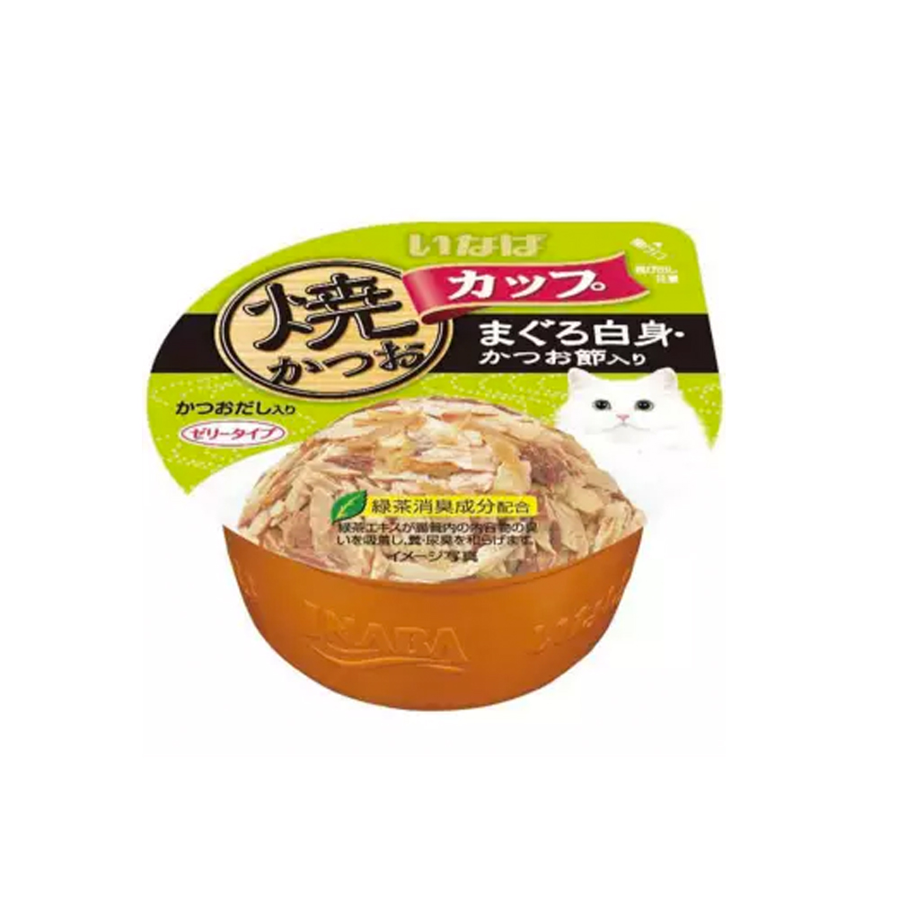 Inaba แมวถ้วย รสทูน่ามากุโระและปลาโอ เกรวี่ 80ก. (IMC-103)