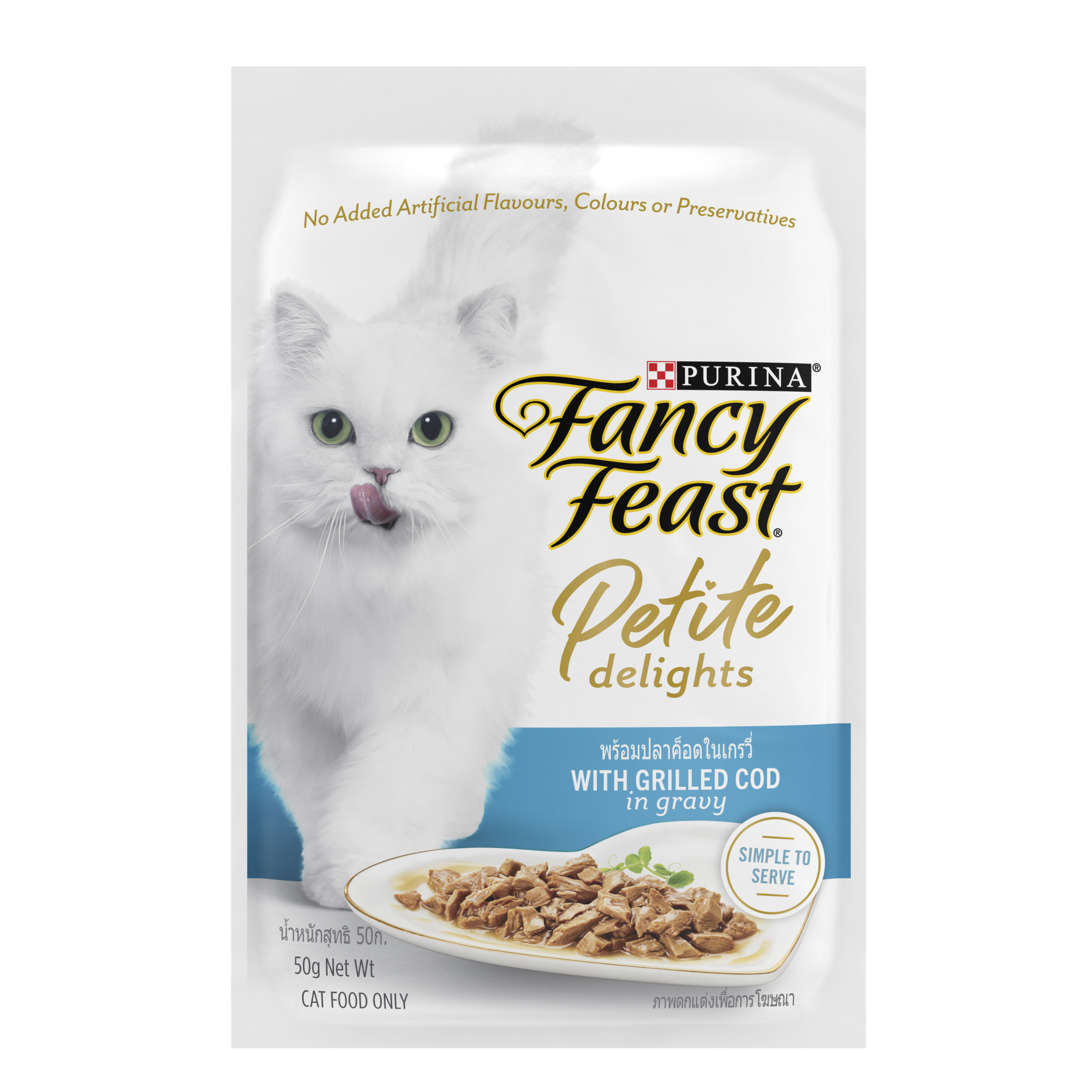 (โหล) 12x50ก. Fancy Feast Delight เพาซ์แมว ปลาค๊อตเกรวี่