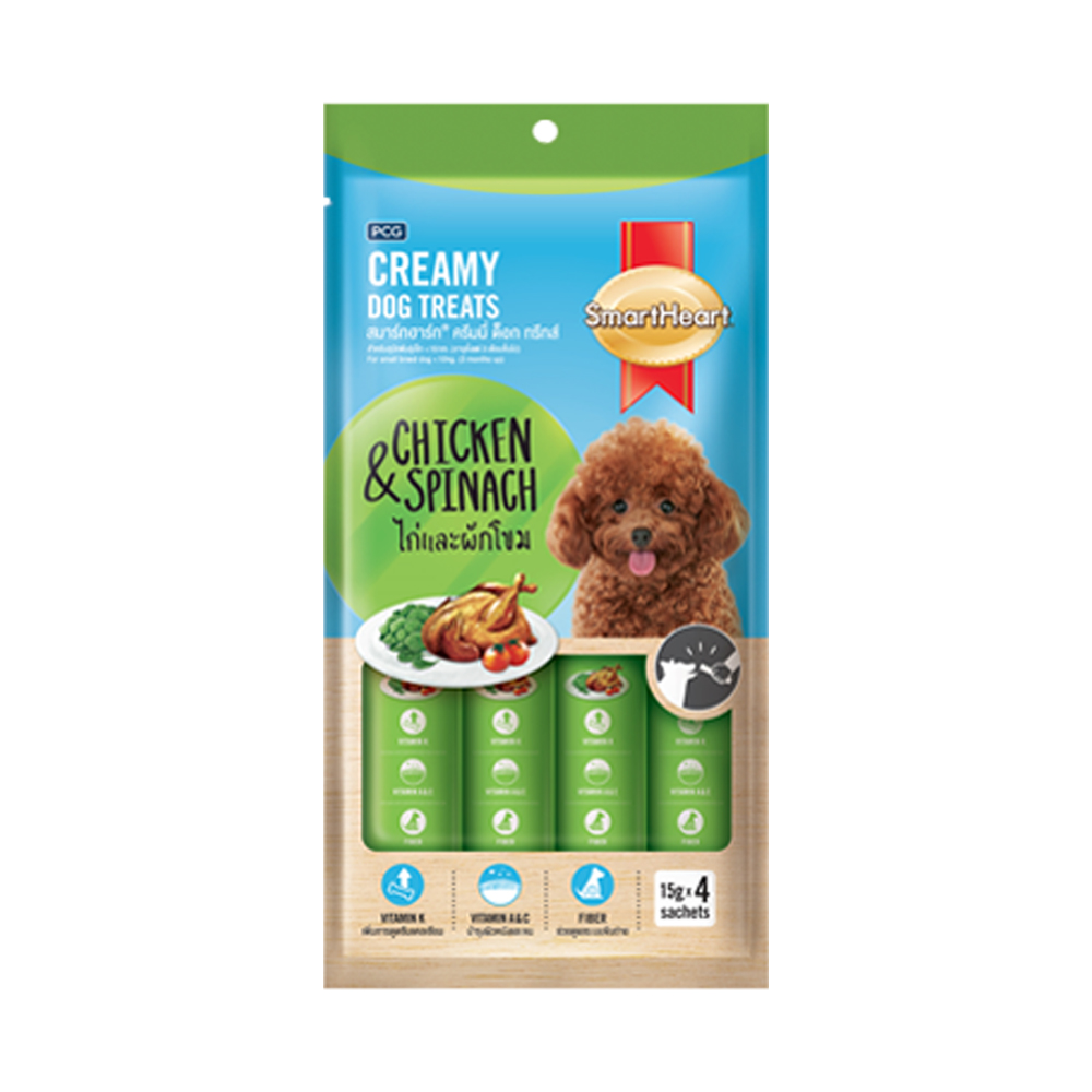 SmartHeart ขนมสุนัขเลีย รสไก่ผักโขม 60ก.