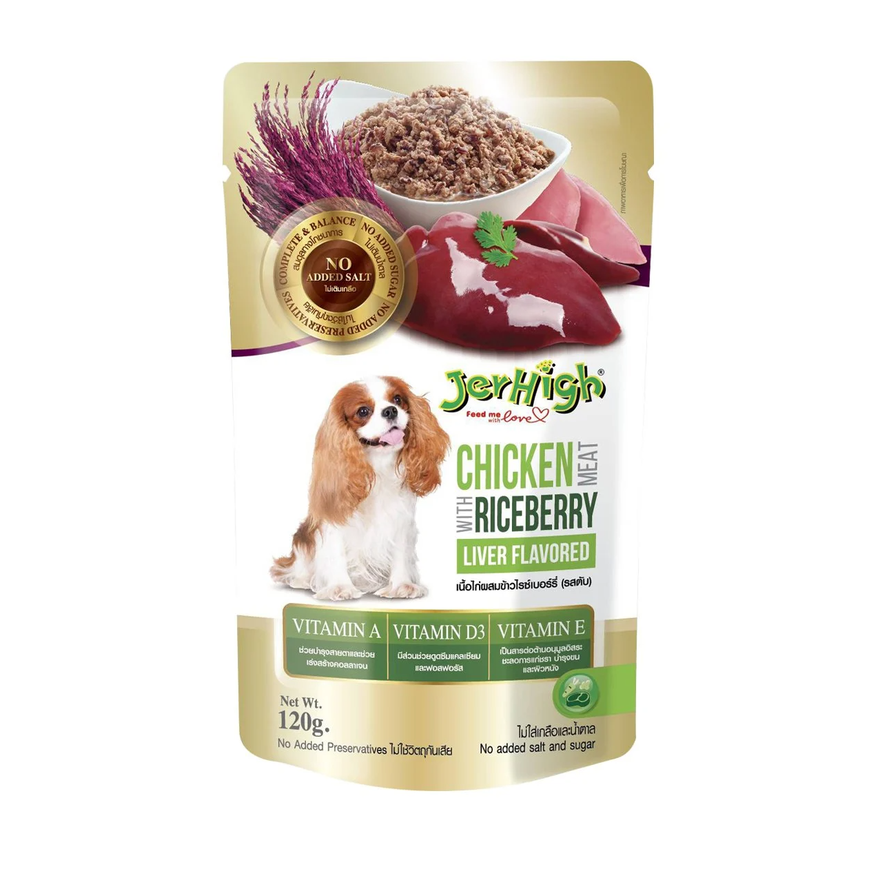 Jerhigh เพาซ์สุนัข รสไก่ไรซ์เบอรี่และตับ