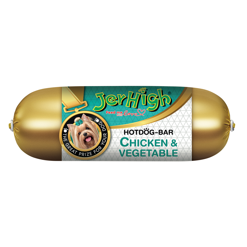 Jerhigh Hotdog Bar ขนมสุนัข รสไก่ผัก 150ก.