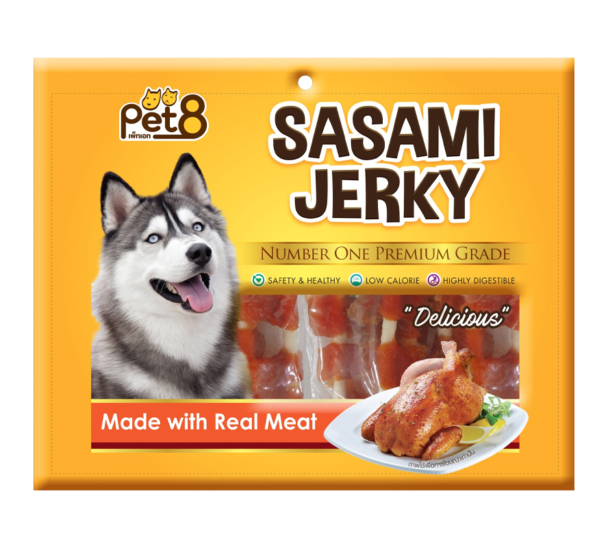 • Pet8 ขนมสุนัข ไก่เสียบแท่งหนังเกลียว JJ408 400ก.