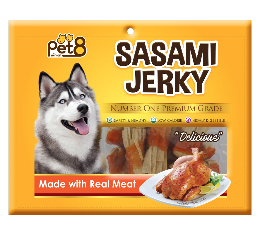 • Pet8 ขนมสุนัข ไก่พันปลาแผ่นพับครึ่ง JJ502 150ก.