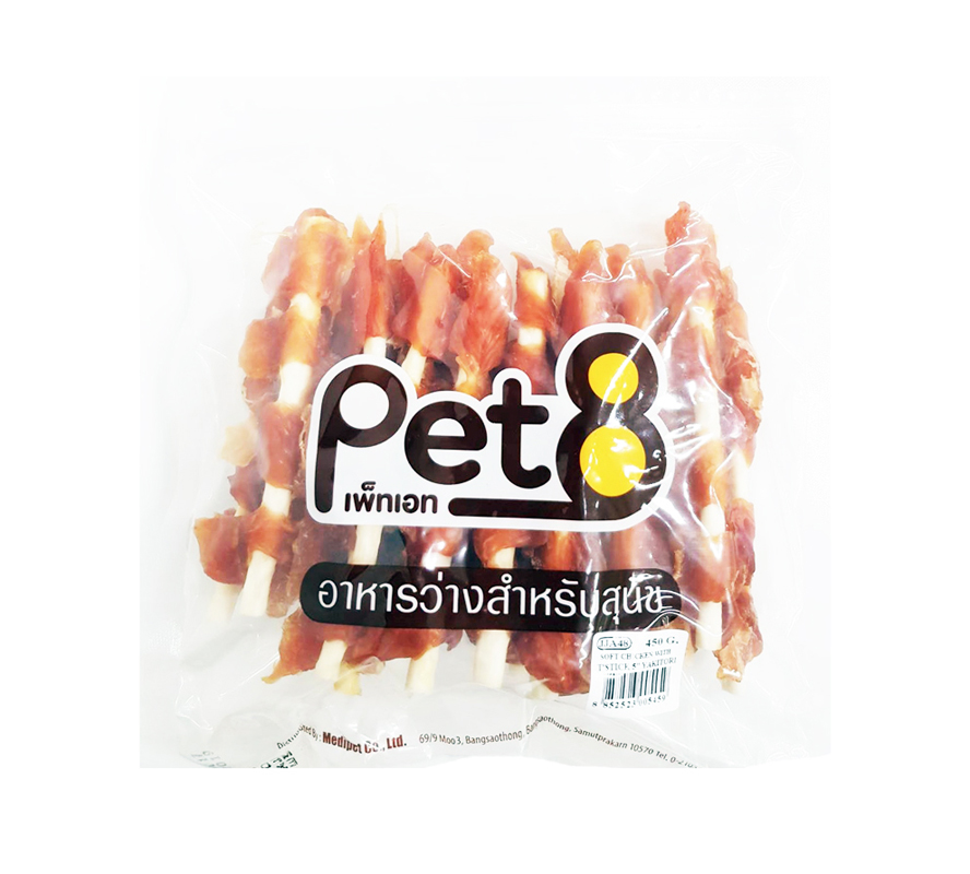 Pet8 ขนมสุนัข ไก่เสียบแท่งหนังเกลียว 5นิ้ว JJA48 450ก.