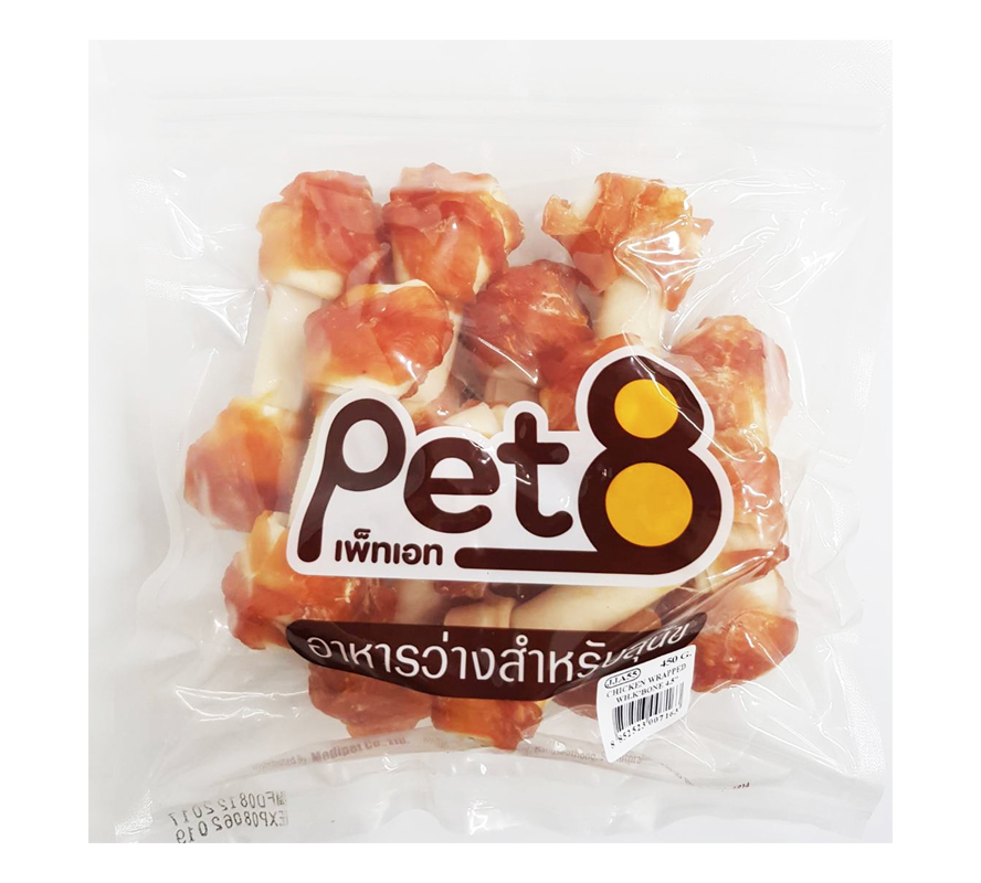 • Pet8 ขนมสุนัข สันในไก่พันกระดูก 4.5นิ้ว JJ55 450ก.