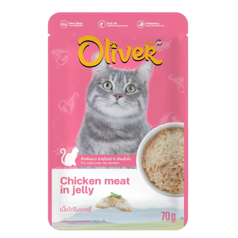 (โหล) 12x70ก. Oliver เพาซ์แมว รสไก่เยลลี่