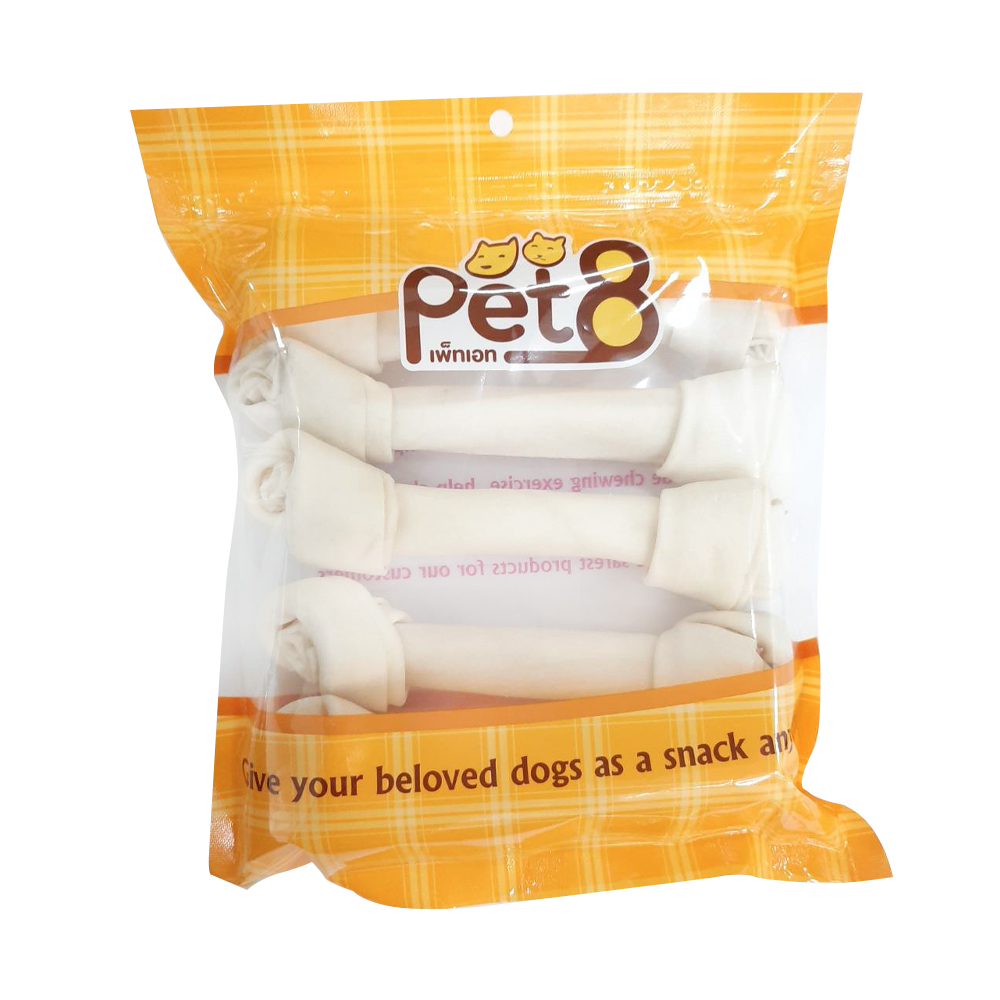 Pet8 ขนมสุนัข กระดูกผูกขาว 7.5นิ้ว HL21 4ชิ้น
