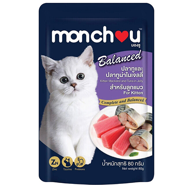 Monchou Balance เพาซ์ลูกแมว รสปลาทูและทูน่าเจลลี่ 80ก.