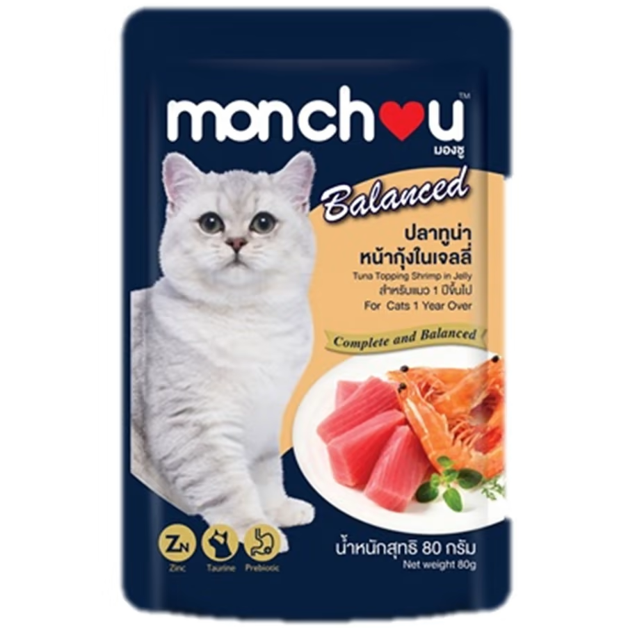 • Monchou Balance เพาซ์แมว รสทูน่ากุ้งเจลลี่ 80ก.