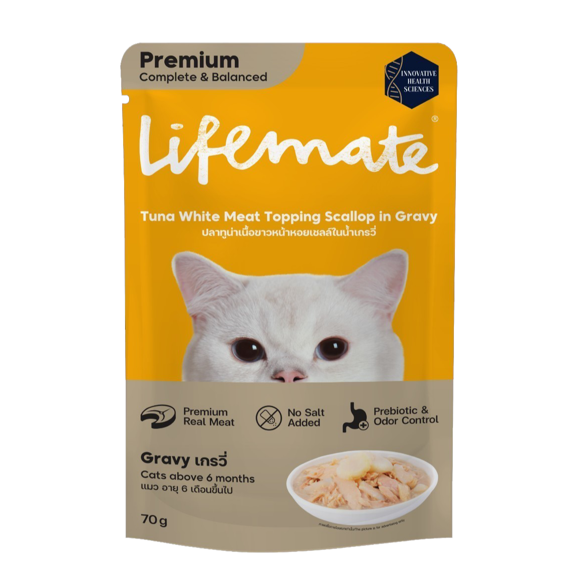 • (โหล) 12x70ก. Lifemate เพาซ์แมว รสทูน่าขาวหอยเกรวี่