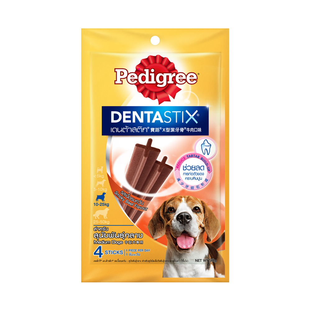Pedigree Denta Stix ขนมขัดฟันสุนัข สำหรับสุนัขพันธุ์กลาง รสเนื้อ 98ก.