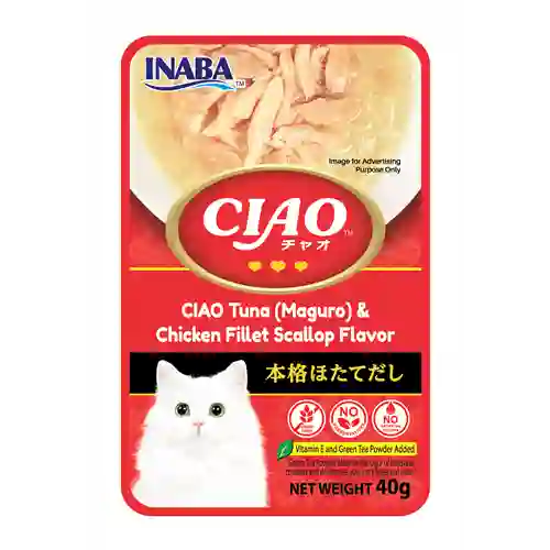 (แพ็ค) 4x35ก. Ciao โทโรมิ เพาช์แมว รสไก่และทูน่าหอยเชลล์