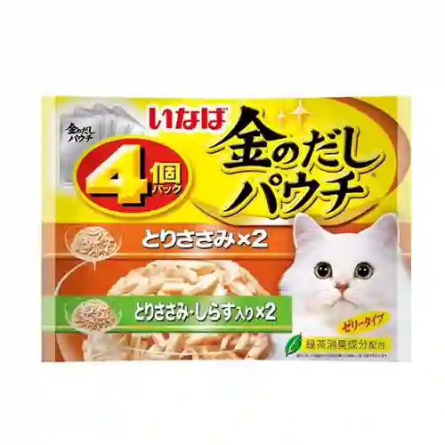 (แพ็ค) 4x60ก. Inaba เพาว์แมว รสไก่และปลาข้าวสารในเยลลี่
